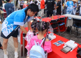 長崎キヤノンからは、フォトサービスを提供しており、お祭りに来られる多くのお客様の来場記念に写真を撮影し、プレゼントしています。